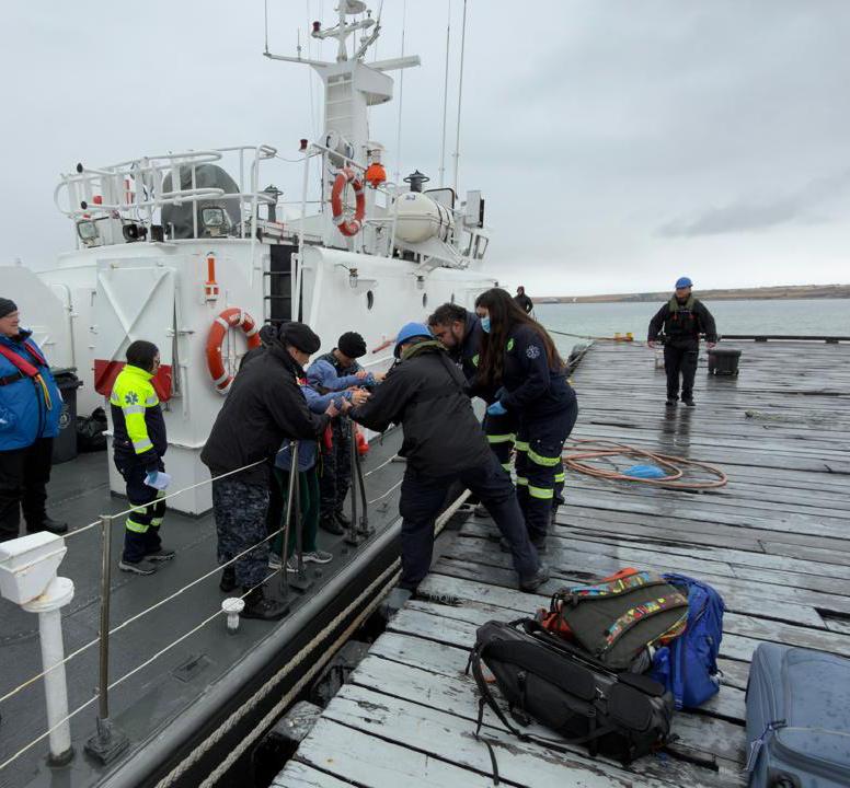 de Puerto Natales. Traslado y atención hospitalaria Tras el arribo a puerto, se activaron los protocolos de recepción coordinados previamente por la Capitanía de Puerto. En el muelle esperaba una ambulancia del SAMU, la cual realizó el traslado inmediato de los ciudadanos extranjeros hacia el Hospital Doctor Augusto Essmann.