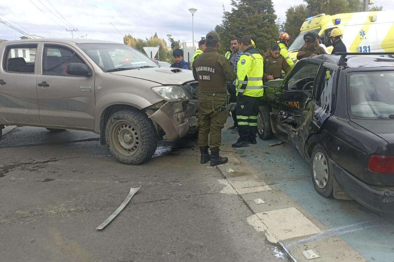 Alrededor de las 13.40 horas de ayer fue reportado un accidente en plena Avenida España, en intersección con calle Bellavista, en Punta Arenas, el cual fue protagonizado por una camioneta Toyota Hilux con taxi colectivo. El siniestro dejó dos lesionados, una mujer que iba de pasajera en el vehículo mayor y un hombre de pasajero en el colectivo.