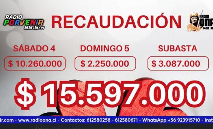 De esta manera, se informó que durante el sábado la convocatoria logró reunir 10.260.000 pesos, sumando 2.250.000 ayer domingo. A esto, se agregó lo recaudado a través de una actividad de subasta, que incrementó la cifra en 3.087.000 pesos. Porvenireños
