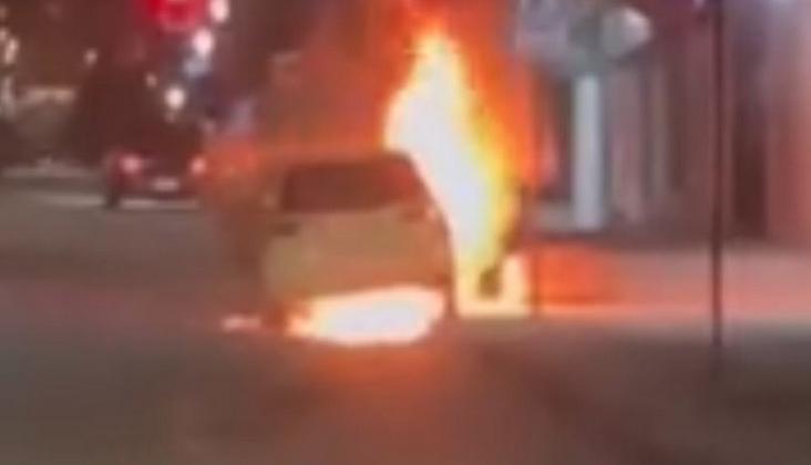 Temerario chofer quedó con su auto envuelto en llamas en pleno centro
