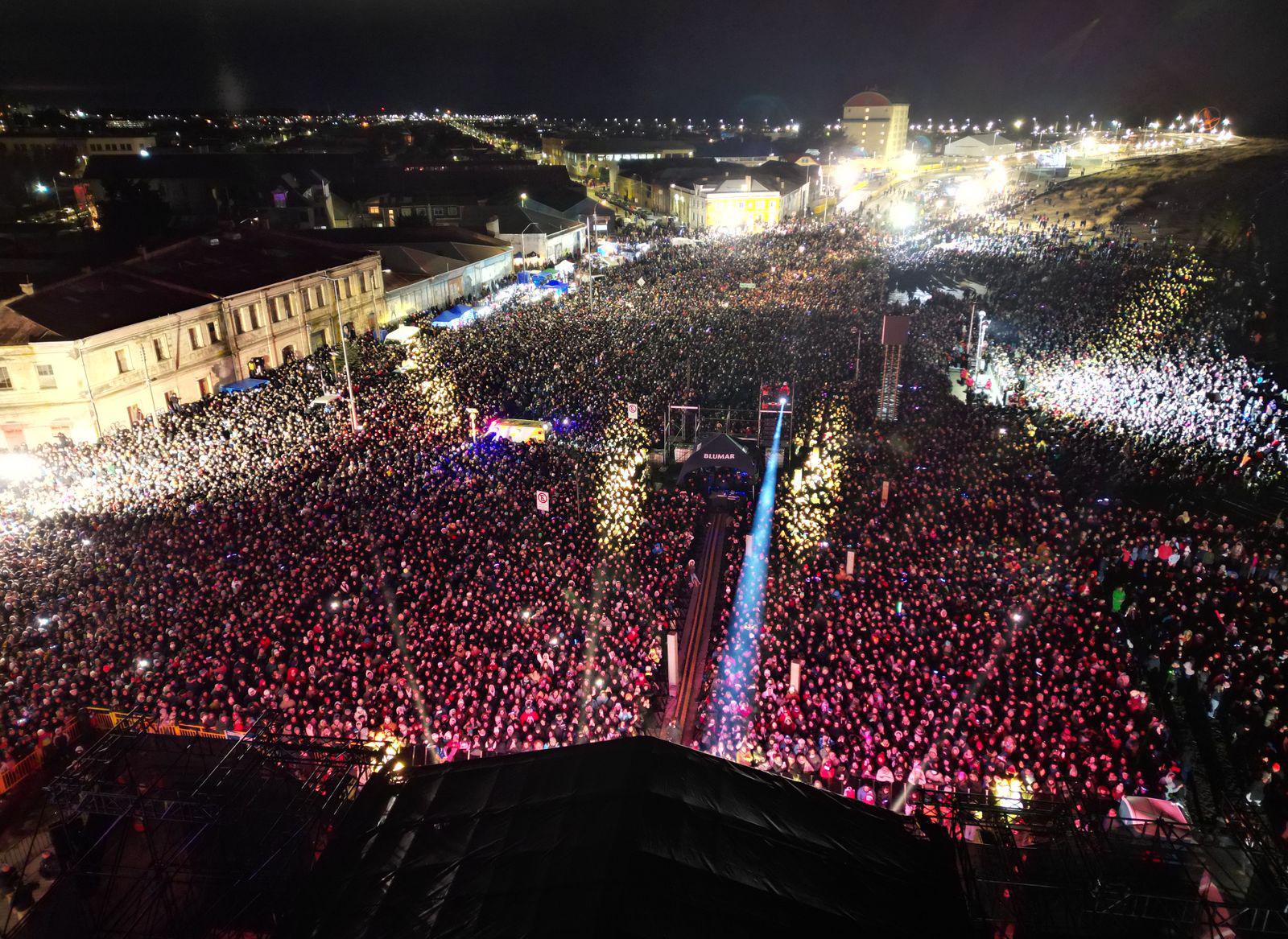 cipal. Las imágenes del público cantando al unísono, envuelto en luces LED y frente al Estrecho de Magallanes, se convirtieron rápidamente en símbolo del evento. Las tomas aéreas captaron una ciudad completamente volcada a la celebración, con miles de personas formando parte de una jornada donde el invierno se transformó en fiesta.
