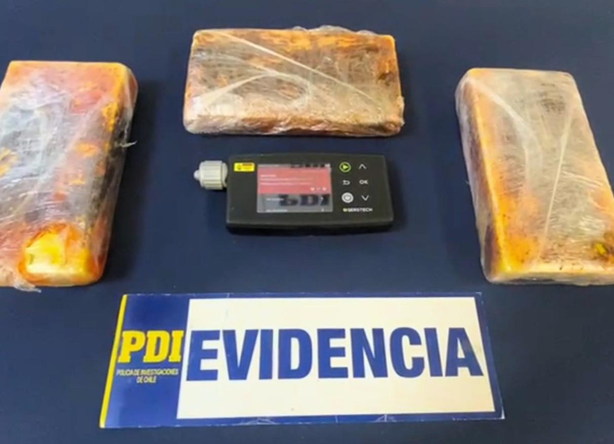 Los tres envoltorios de clorhidrato de cocaína arrojaron un peso bruto de 3,2 kilogramos.