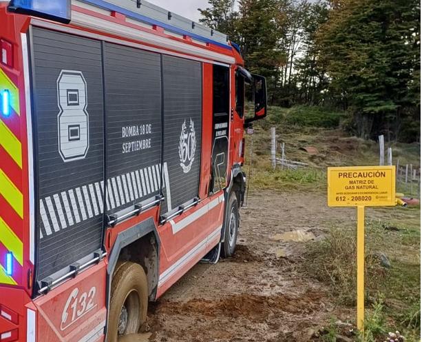 dos unidades de la Sexta y Octava Compañía de Bomberos quedaron empantanadas en el barro al intentar llegar al siniestro.