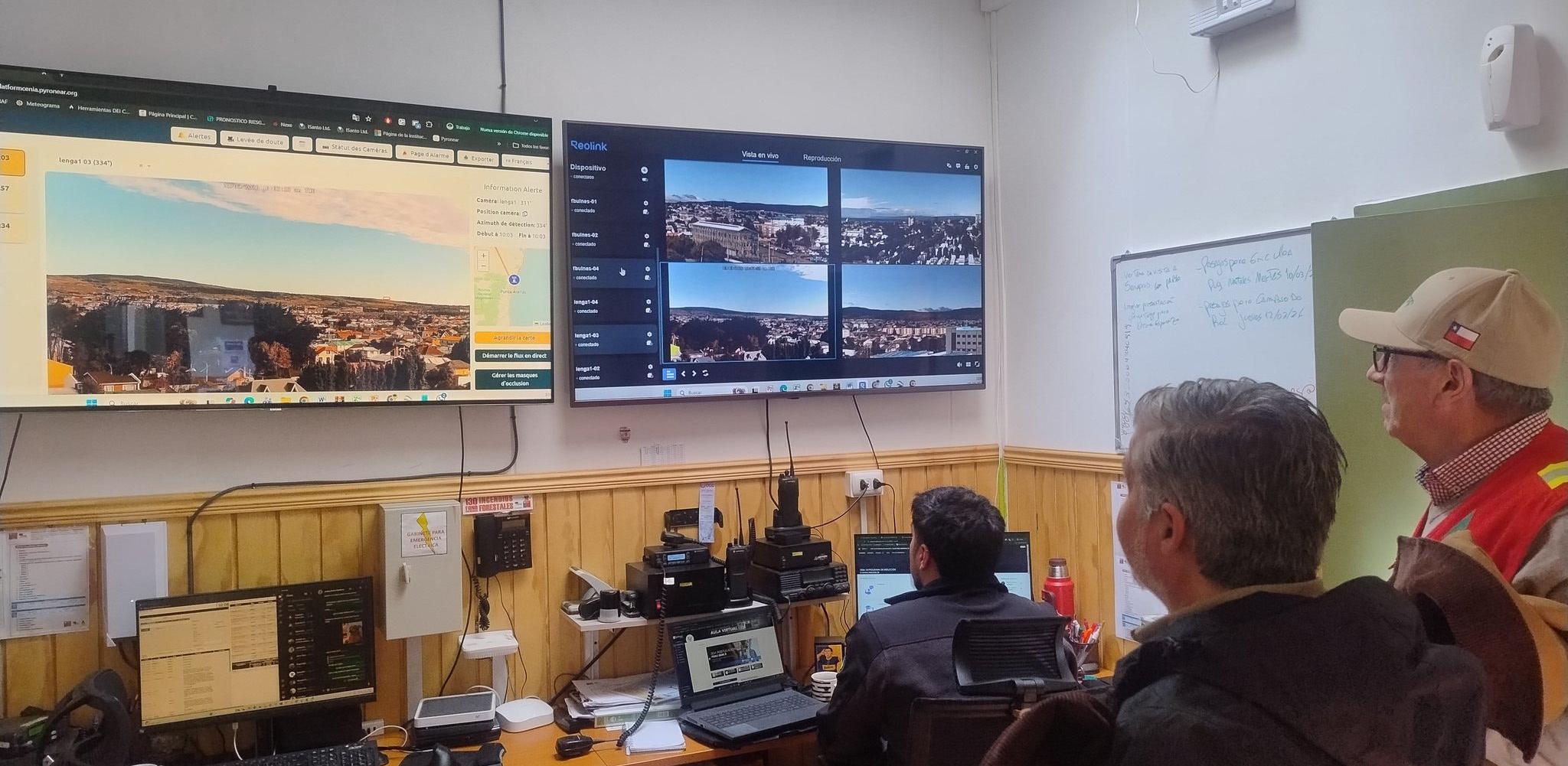 El alto mando de Conaf observó las cámaras de seguridad desde el centro de monitoreo.