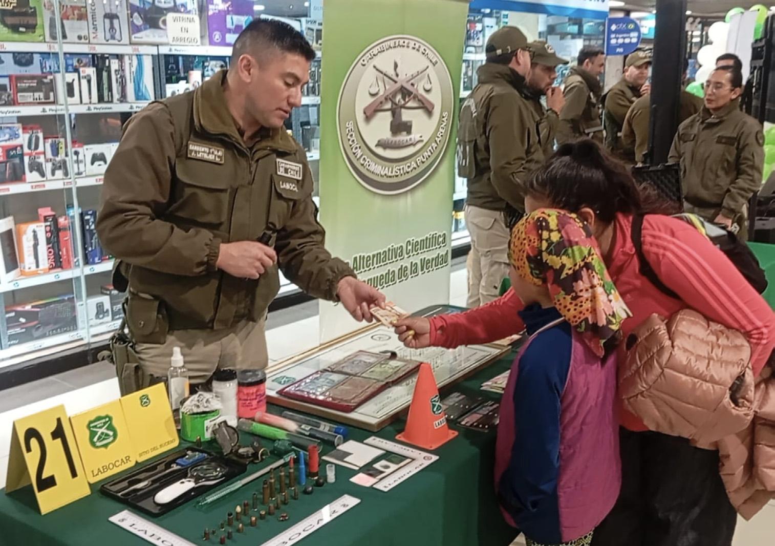 La muestra incluyó stands del GOPE, Labocar, OS7, el MICC con el Plan Cuadrante, la Escuela de Formación de Carabineros, la SIAT, Control de Orden Público, la Sección Operativa RPAS, el área de Tecnologías de la Información y la Sección Aérea.