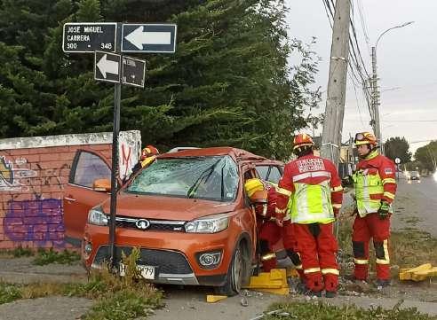 Magallanes, quienes junto con el SAMU lograron sacar desde el interior a la única ocupante del móvil, para que luego sea trasladada hasta el Hospital Clínico de Magallanes.