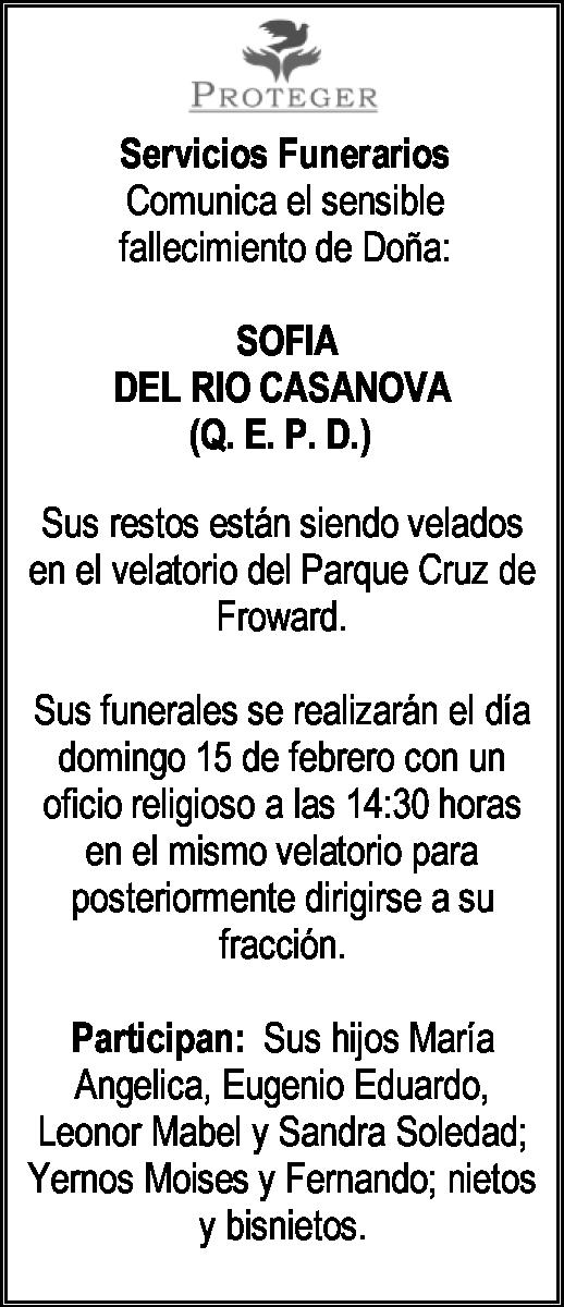 OBITUARIO: SOFÍA DEL RÍO CASANOVA.