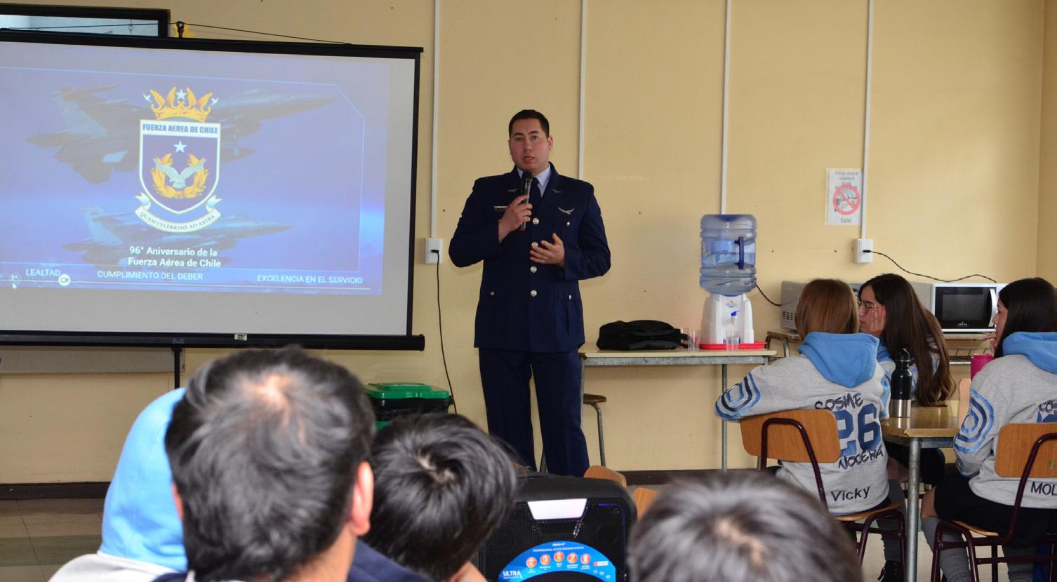 En el marco del Mes del Aire y del Espacio, personal de la IVª Brigada Aérea compartió con estudiantes de cuarto medio ● las oportunidades de formación que ofrece la escuela de aviación.