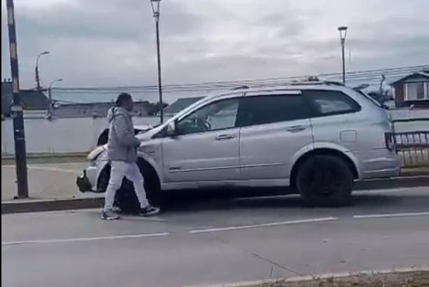 En otro registro, quien se estaba alejando del vehículo fue aparentemente increpado por un vecino quien le reclamaba por su irresponsabilidad, señalando que pudo haber sido una persona y no el mobiliario público.