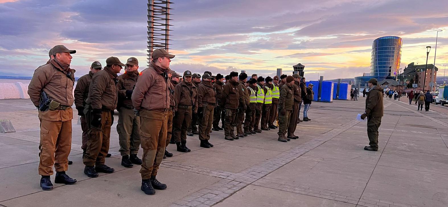 Formación de Carabineros en letras de Punta Arenas para últimas instrucciones de la jornada.