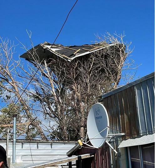 Una verdadera imagen de película fue lo que se observó en el lugar, a causa de la posición en la que quedó el resto de la techumbre que fue arrancada desde el inmueble, generando riesgo inminente a los vecinos.