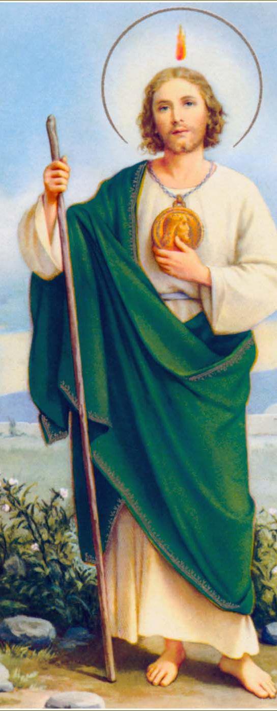 Santo Apóstol San Judas, fiel siervo y amigo de Jesús, la iglesia te honra e invoca universalmente, como el patrón de los casos difíciles y desesperados. Ruega por mí, estoy sólo y sin ayuda. Te imploro hagas uso del privilegio especial que se te ha concedido, de socorrer pronto y visiblemente cuando casi se ha perdido toda esperanza. Ven en mi ayuda en esta gran necesidad, para que pueda recibir consuelo y socorro del cielo en todas mis necesidades, tribulaciones y sufrimientos, parwticularmente (haga aquí su petición), y para que pueda alabar a Dios contigo y con todos los elegidos por siempre. Te doy las gracias glorioso San Judas, y prometo nunca olvidarme de este gran favor, honrarte siempre como mi patrono especial y poderoso y, con agradecimiento hacer todo lo que pueda para fomentar tu devoción. Amén.