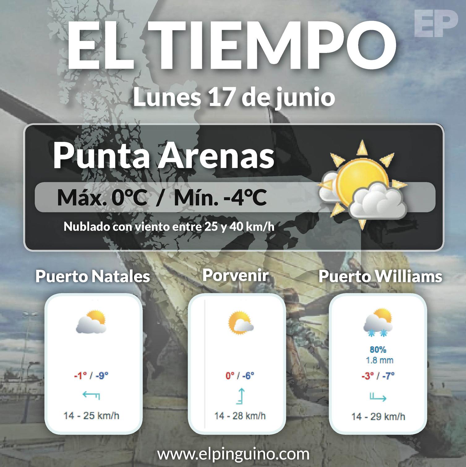 El jefe del Centro Meteorológico Marítimo de la Armada de Chile, capitán de Corbeta Gonzalo Bertolotto, dijo que “desde ayer (domingo) estamos con una alta presión polar, que nos deja condiciones de muy baja temperatura. La semana pasada tuvimos la primera nevada, que dejó la ciudad blanca. Nevó, no subió la temperatura, y esa será la tónica de los próximos días. Tuvimos una mínima de -3.2° acá en el Centro Meteorológico Marítimo de Magallanes y la Antártica Chilena, y en otros sectores como el aeropuerto se registraron -9°, y en el Instituto de la Patagonia -4°”. Referente a las temperaturas, se espera que dentro de hoy o mañana se pueda llegar a los -6°, lo que causa aún más una baja sensación térmica para los habitantes de Magallanes.