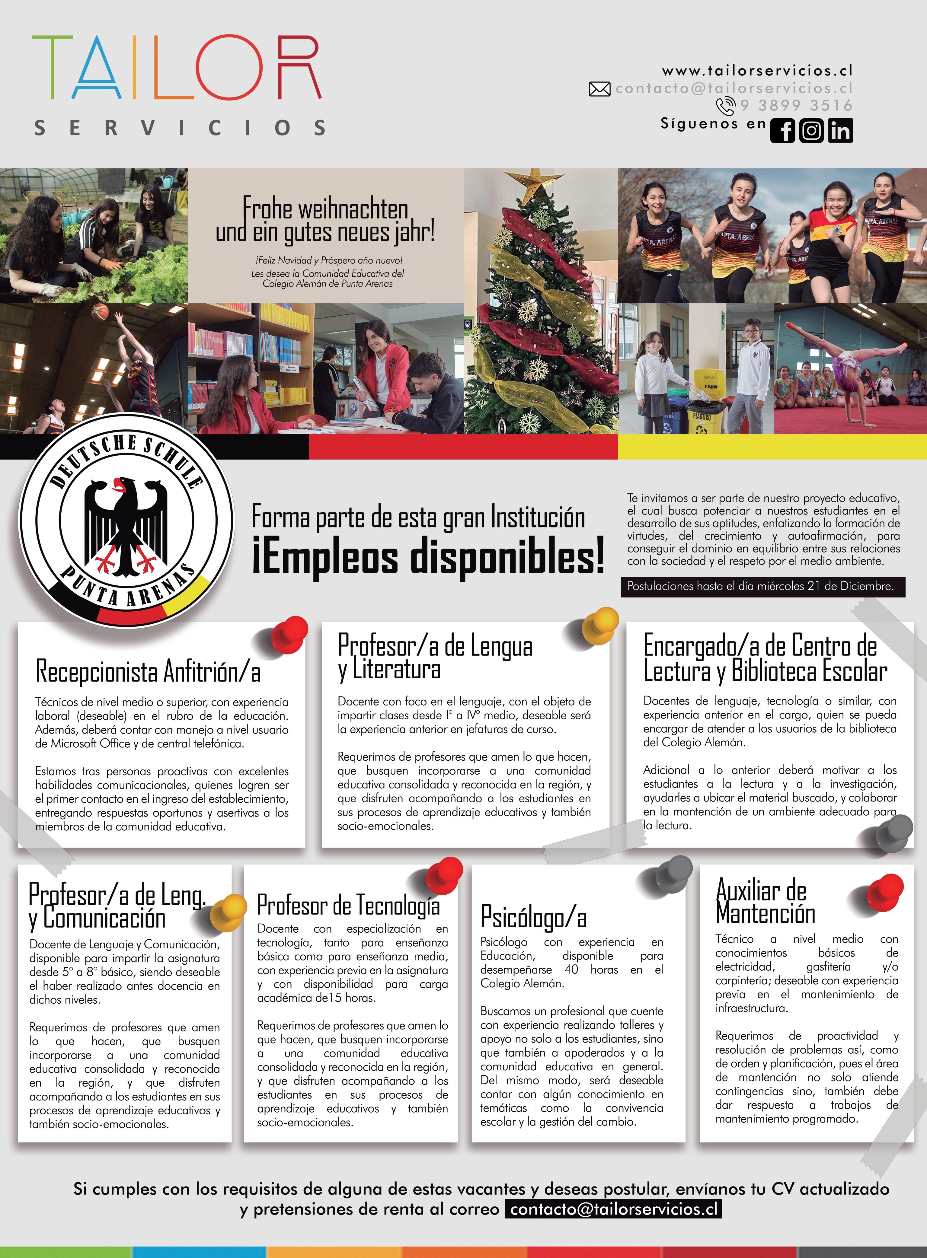 Se nece S ita a S i S tente de museo. Requisitos: Licencia media, uso de equipos tecnológicos y programas básicos de computación y Photoshop. Presentar CV en Bulnes 336, hasta el 24 de diciembre 2022. Pretensión de sueldo líquido. (16-19)