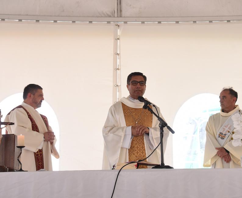 Las misas de este año, gracias a las gestiones de la Sra. alcaldesa y el Consejo Municipal se celebraron en una gran carpa con capacidad de recibir a los asistentes y que contaba además con sillas para los fieles. Esto permitió no sólo dignificar la celebración eucarística, sino protegerse de las duras condiciones climáticas de este año. Ambas misas las presidió el padre obispo Óscar, el que nos instó a ser permanentes peregrinos que anuncian con su testimonio el amor de Dios y recordó que tal como en el bautismo nuestra madre nos hizo el signo de la cruz en la frente, la Virgen de Montserrat también toca nuestro corazón para bendecirnos y cuidarnos como una Madre.