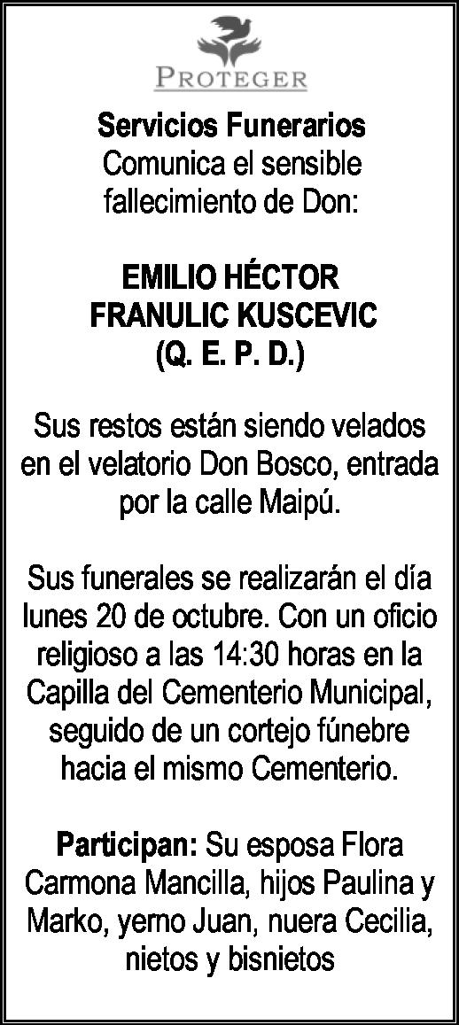 OBITUARIO: HÉCTOR EMILIO FRANULIC KUSCEVIC.