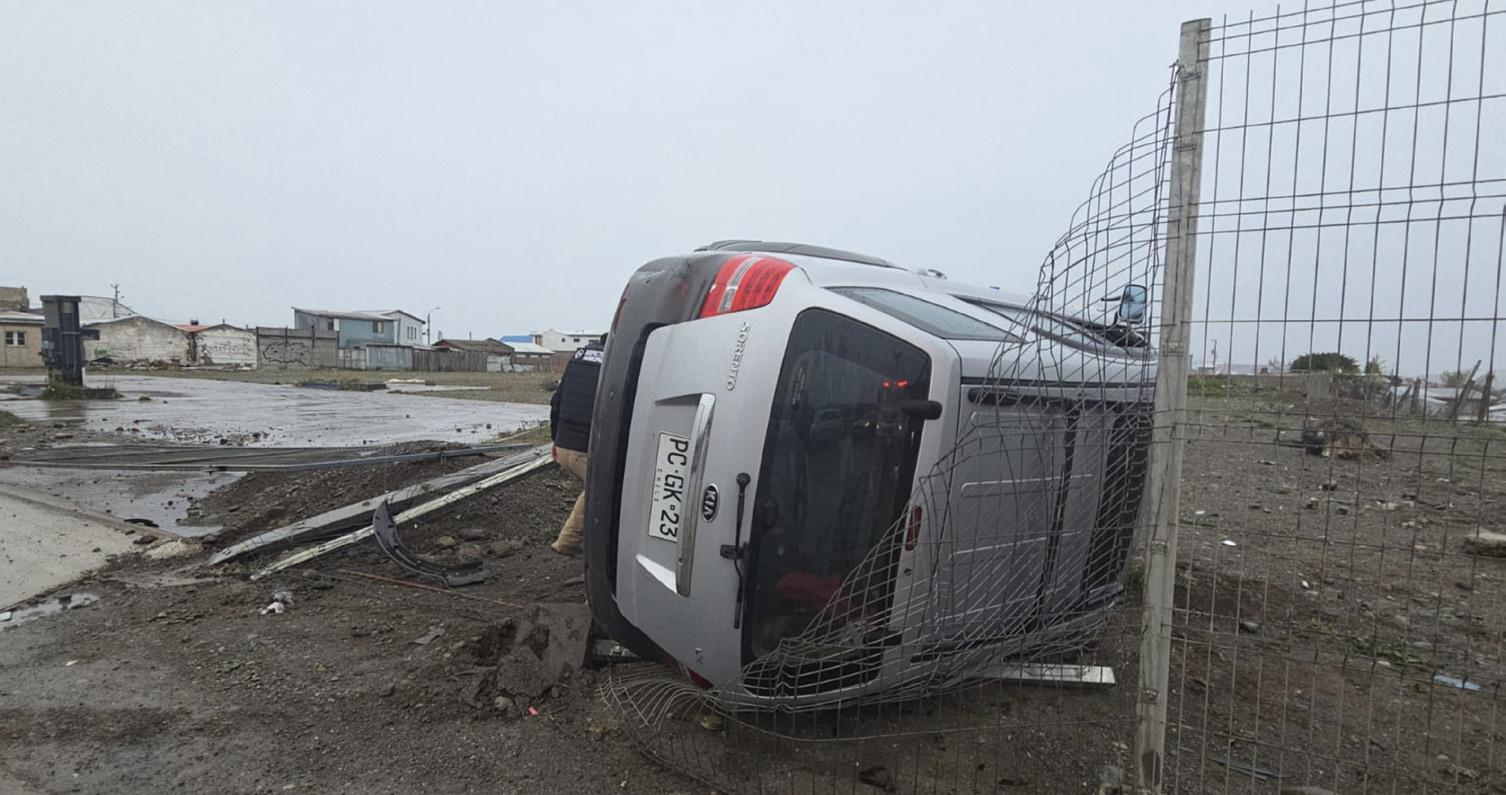 Un impactante accidente de tránsito se registró la tarde de ayer en el sector norte de Punta Arenas, luego que un automóvil perdiera el control y terminara volcado en la Avenida Eduardo Frei, a la altura de Pedro de Valdivia, dejando a su conductora con lesiones leves.