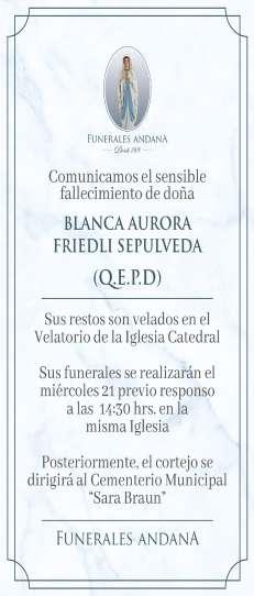 OBITUARIO: BLANCA AURORA FRIEDLI SEPULVEDA