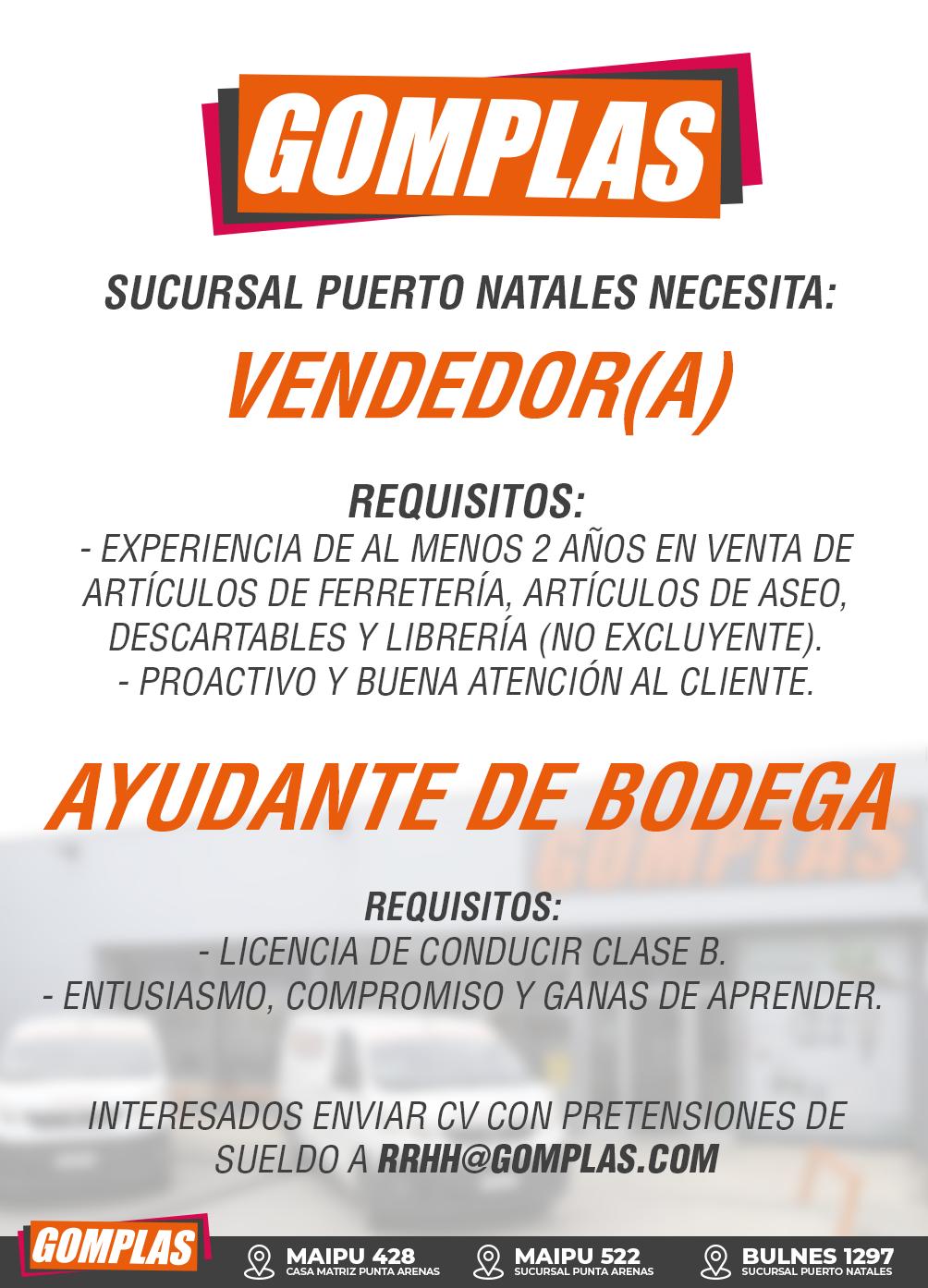 Enviar CV y pretensiones de renta a oportunidadtrabajo332@gmail.com