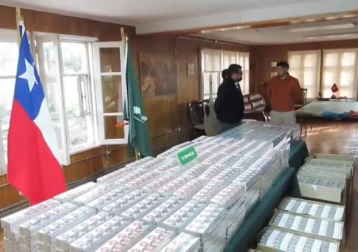 Una vez en la unidad policial, el conteo oficial arrojó la cifra de 8.400 cajetillas de cigarrillos marca Red Point, de procedencia argentina. Según detalló el teniente Rodrigo Fuenzalida, el valor comercial de la mercancía