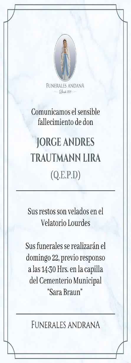 Con pesar informamos el fallecimiento de don Héctor Carlos Cifuentes Castro, acompañando en el dolor a su familia y seres queridos. Sus restos están siendo velados en la Iglesia de los Santos de los Últimos Días, ubicada en Manuel Aguilar esquina Videla, con entrada por el costado. El funeral se realizará el día lunes 23, a las 15:00 horas, en el Cementerio Municipal de Punta Arenas. Participan: Carlos Díaz y Ella