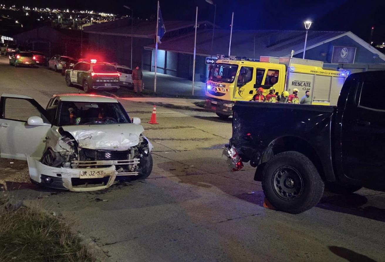 Poco antes de las 21:00 horas de este sábado, un accidente de tránsito de mediana energía se registró en el sector sur de Punta Arenas, específicamente en el cruce de calles Prat con Las Heras. Por causas que aún son materia de investigación, una camioneta Ford y un automóvil Suzuki Swift colisionaron violentamente, dejando daños de consideración en ambos vehículos.