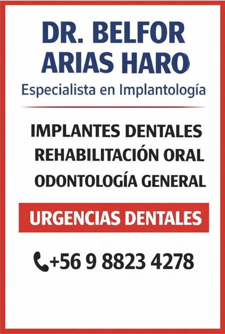 LéPOri DíAz. Diplomado en U.S.A. Miembro Soc. de Implantología Oral de Chile. Cirugía Oral Ultrasónica 22 años de experiencia en implantes. Croacia 799 Fono: 61 2 242168