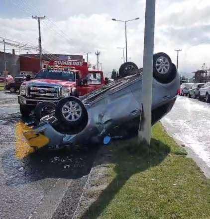 En el lugar, se registró una colisión con posterior volcamiento, resultando dos personas con lesiones leves. Al lugar, acudió la Unidad de Rescate de la Primera Compañía.