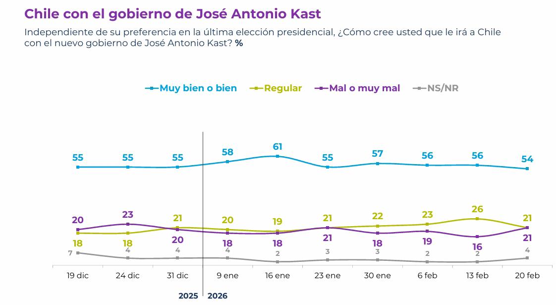 Encuesta Cadem: 54% cree que a Chile le irá bien con José Antonio Kast y el 35% aprueba la gestión de Boric