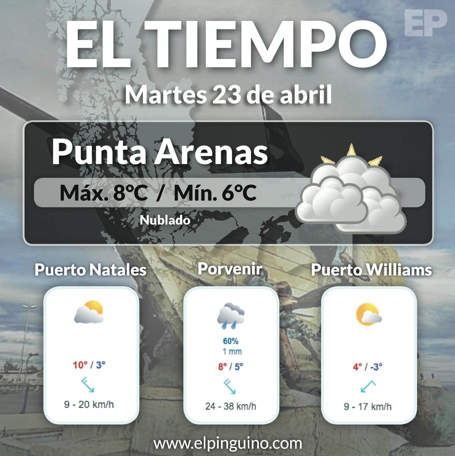 Año XVI, N° 6.039 Punta Arenas, martes 23 de abril de 2024 Canal 30 señal cable 61 2 292900 Pingüino Radio 95.3 FM / 590 AM +569 58575527 Radio www.elpinguino.com VOTA EN www.ELPINgUINO COM ENCUESTA DE LA SEMANA: ¿Usted cree que debería existir un puesto permanente
