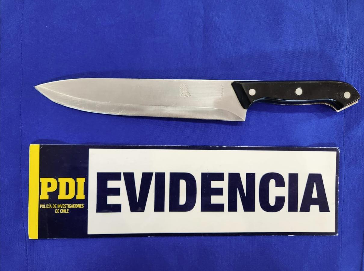 Con este cuchillo “carnicero” el sujeto intimidó a la víctima para quitarle su celular en Puerto Natales.