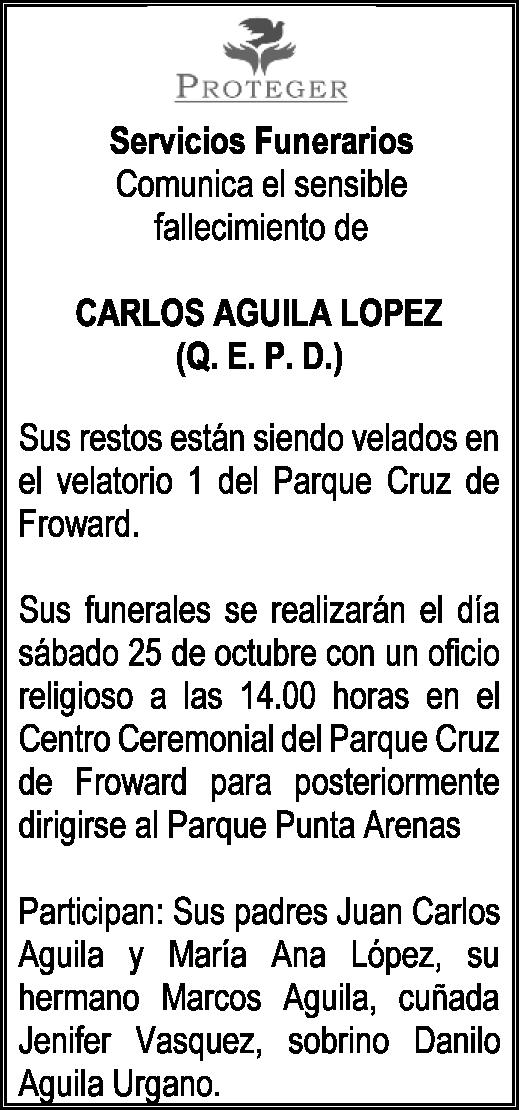 OBITUARIO: CARLOS ALEJANDRO AGUILA LOPEZ. IN MEMORIAM: PEDRO EDUARDO JARA POBLETE.