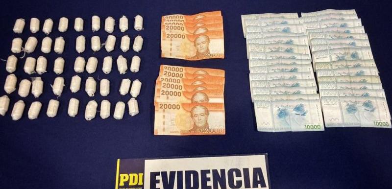 Fueron 45 ovoides repletos de cocaína, además de dinero en efectivo y otras especies, las que fueron incautadas al sujeto.