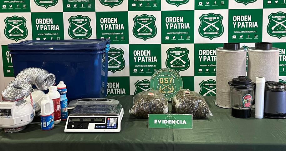 Además del pesaje —que representa un duro golpe al microtráfico local debido al volumen de la sustancia— Carabineros incautó, marihuana procesada: Lista para su distribución, diversas especies asociadas a un sistema indoor, el cual se encontraba desmantelado dentro de las mismas bolsas.