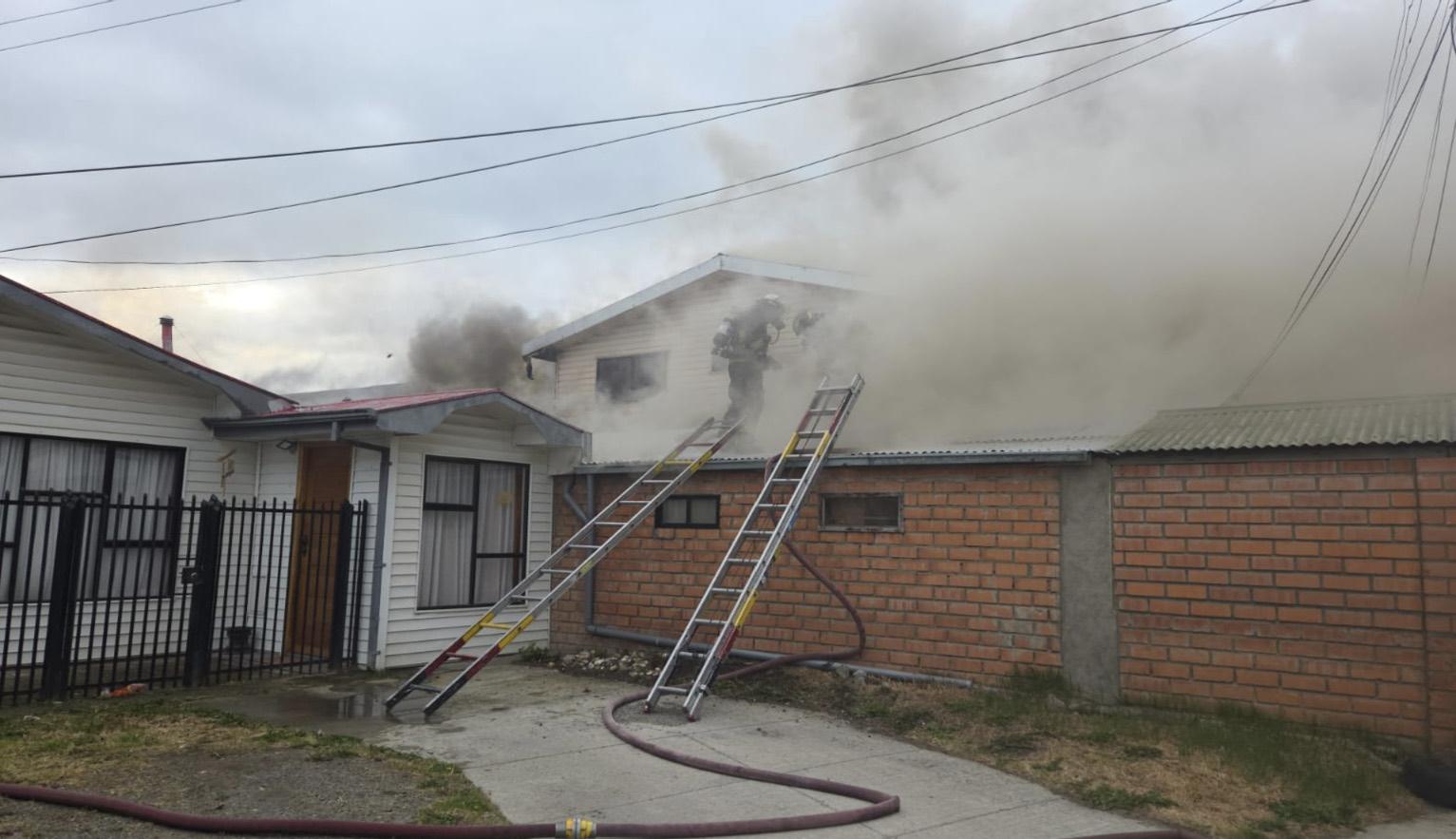 Seis compañías de Bomberos de Punta Arenas trabajaron intensamente para controlar el siniestro, que dejó una vivienda con ● pérdida total y tres casas con perdidas parciales.