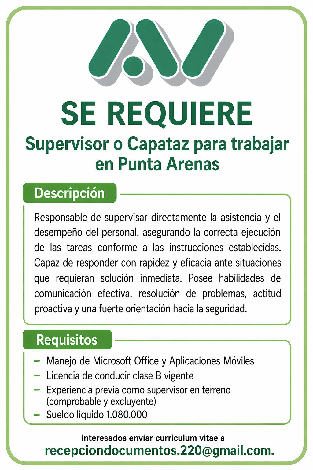Lugar de Trabajo: Punta Arenas.