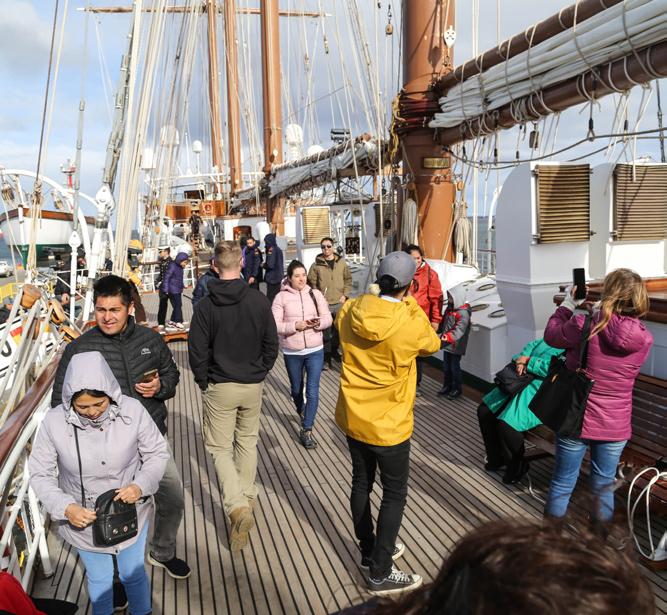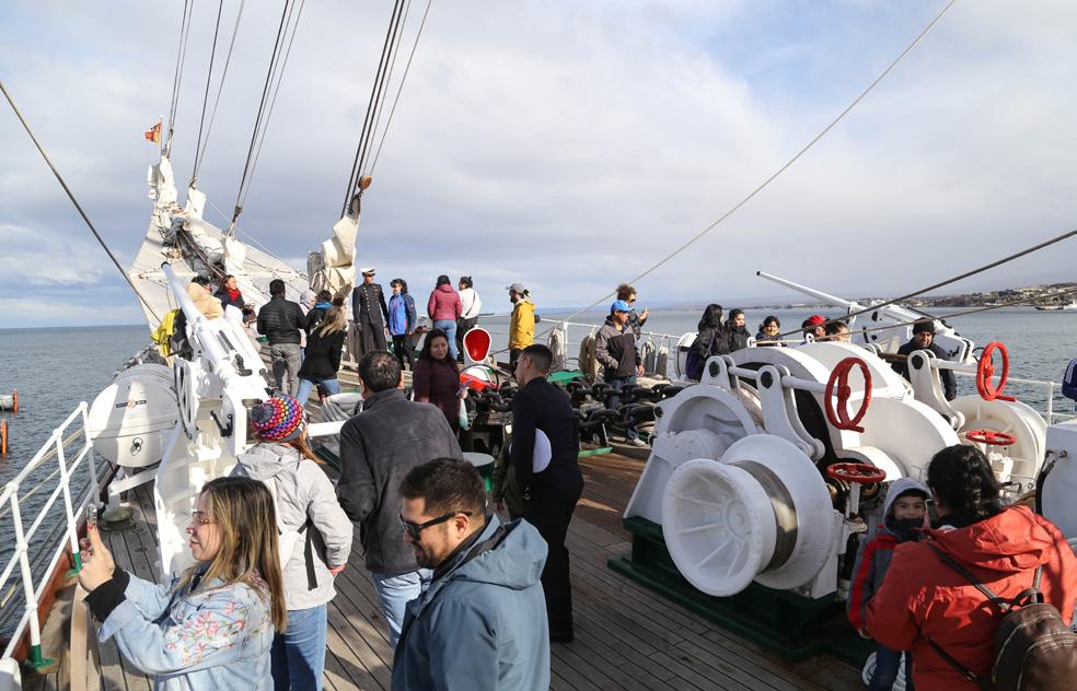 La primera jornada de esta actividad contó con gran presencia magallánica, que compartió y conoció el día a día de los ● guardiamarinas y la historia de la embarcación que recorre el mundo.