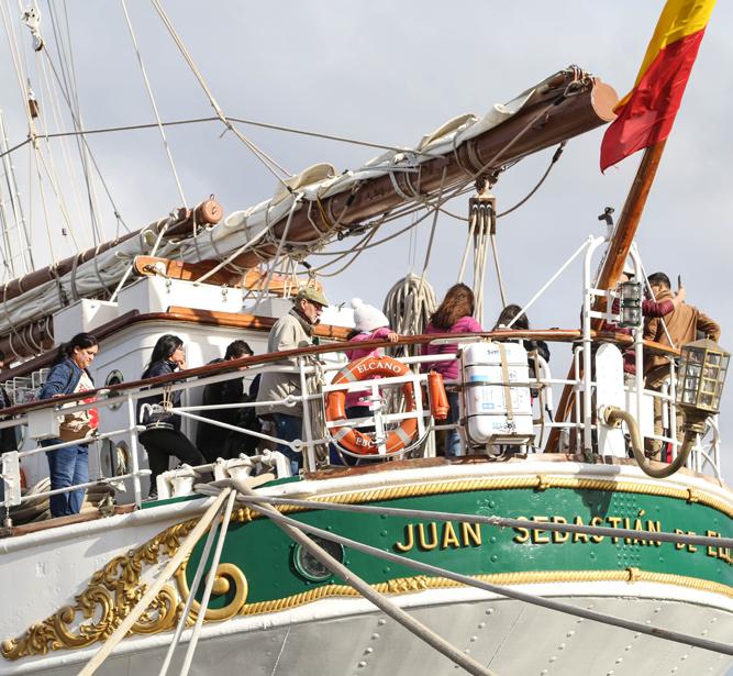 correr y conocer la historia del buque español, que eran cordialmente recibidos por los guardiamarinas, muy solicitados para una fotografía que inmortalice el momento.