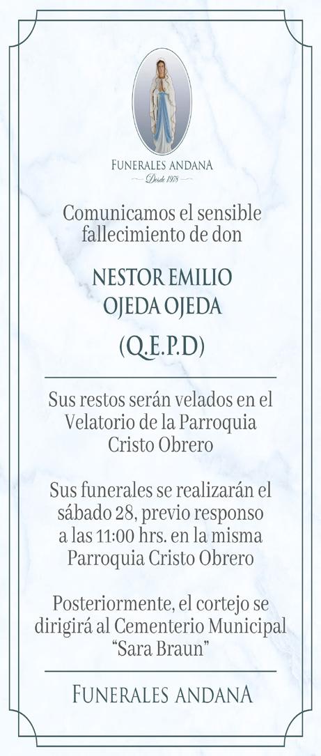 OBITUARIO: MARÍA ANGÉLICA DÍAZ ÁGUILA NÉSTOR EMILIO OJEDA OJEDA.