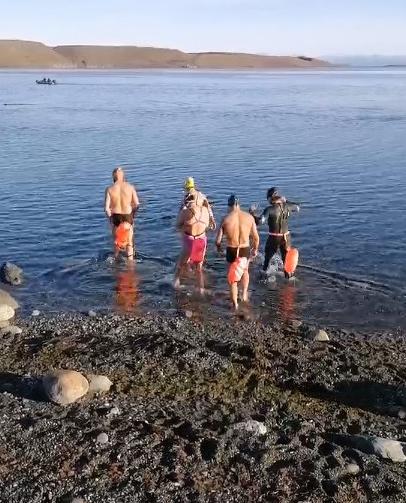 Los provenireños desafiaron las heladas aguss de la bahía de Porvenir.