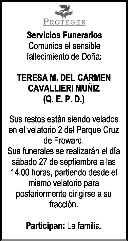 OBITUARIO: TERESA MARIANA DEL CARMEN CAVALLIERI MUÑIZ