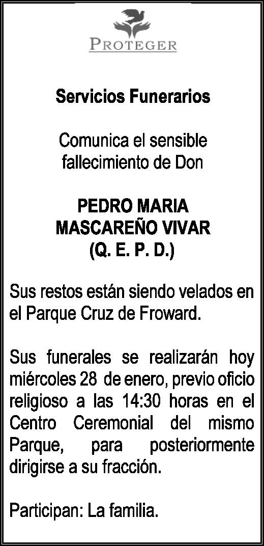 OBITUARIO: VÍCTOR HUGO MAYORGA CASTRO PEDRO MARIA MASCAREÑO VIVAR