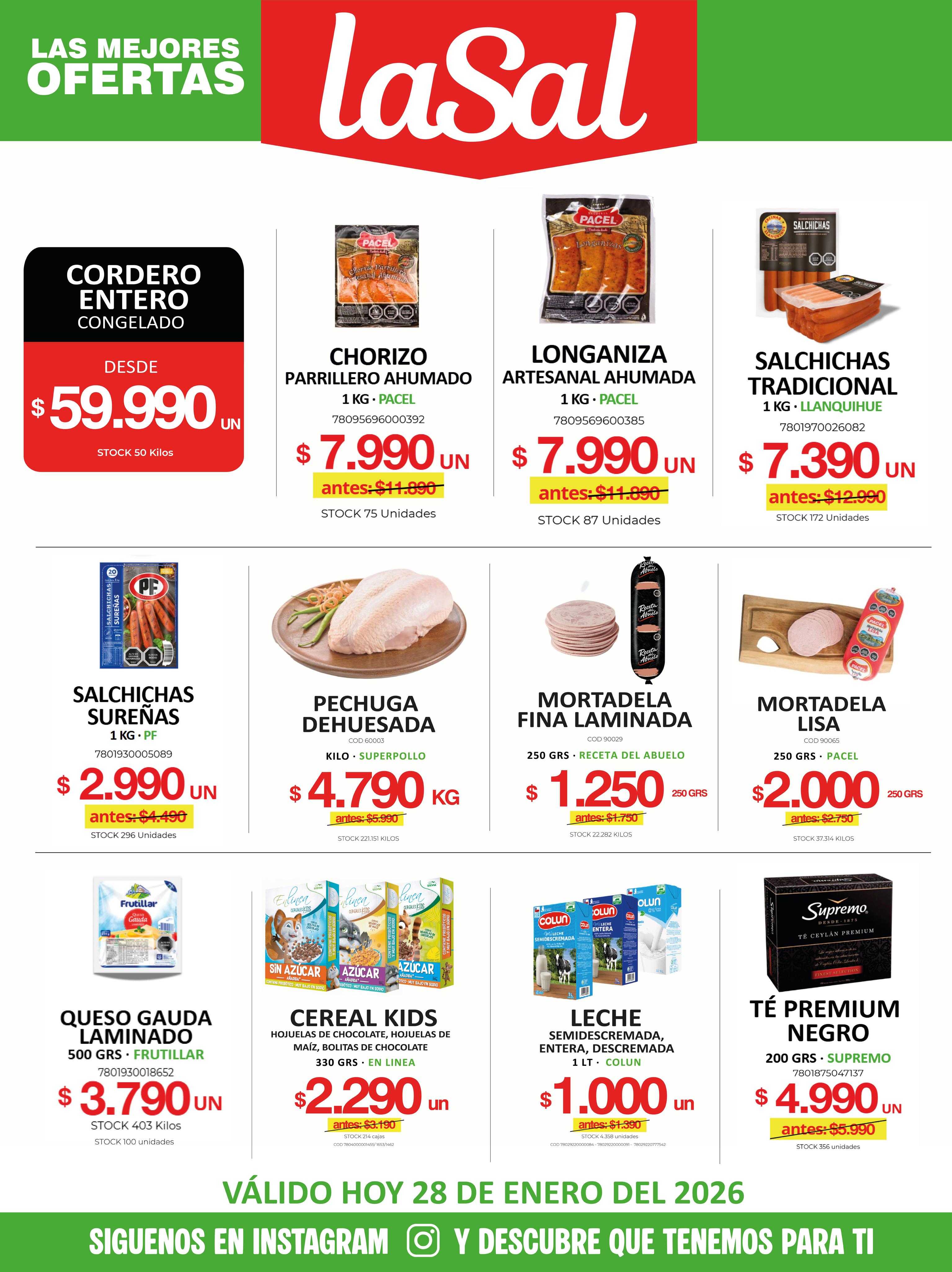 Estos productos son exhibidos en nuestra sala de ventas con sus respectivos valores.