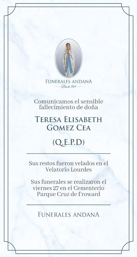 OBITUARIO: IDA DEL CARMEN ÁLVAREZ AGUILAR TERESA ELISABETH GÓMEZ CEA - JUANA ISAURA FLORES SOZA