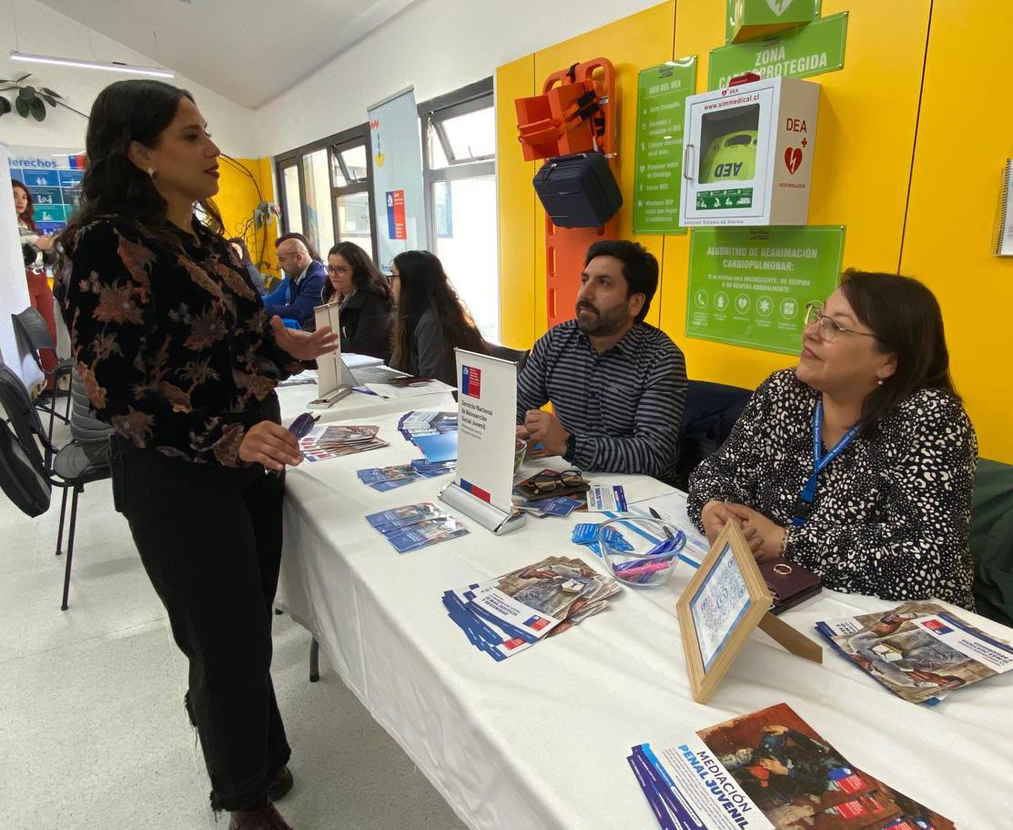 de la Comisión Verdad y Niñez. Foco en la reinserción juvenil Uno de los puntos destacados de la jornada fue el módulo del Servicio Nacional de Reinserción Social Juvenil, encabezado por la profesional Pamela Castro. En este espacio, se entregó folletería y se resolvieron dudas ciudadanas sobre los procesos de reinserción y el acceso a la información pública a través de la oficina OIRS. Al respecto, el director regional (s) del servicio, Rodrigo Trujillo, valoró la cercanía lograda con los vecinos: “Este tipo de actividades nos permiten responder de manera directa las consultas en el área de la reinserción de jóvenes y lo que corresponde a sanciones contempladas en la Ley de Responsabilidad Penal Adolescente”,