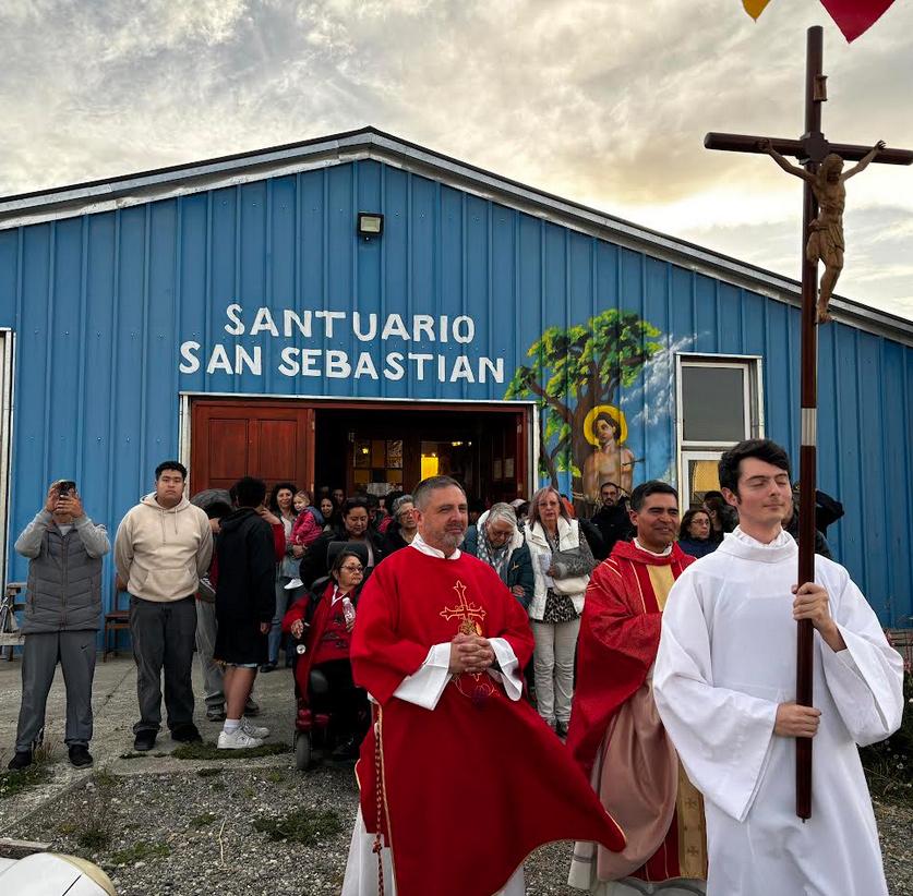 Como todos los años, el 20 de enero, la comunidad del Santuario de San Sebastián de Punta Arenas celebró a su patrono en una Eucaristía presidida por el P. Bernardo Astudillo; en ella participaron numerosos hermanos que con devoción y gratitud llegaron al Santuario de San Sebastián de Los Flamencos para dar gracias por los favores concedidos durante este año y, a la vez, pedir su intercesión por ellos y sus familias. Esta celebración comenzó desde las primeras horas de la mañana; el templo abrió sus puertas para recibir a los peregrinos que se acercaron a encender velas, entregar mandas y elevar oraciones al Señor por intercesión del mártir. Las hermanas Siervas Misioneras del Divino Espíritu que residen en el santuario, acogieron a numerosos peregrinos durante el día que con gran devoción expresaban su gratitud a san Sebastián. Una de las hermanas compartió: “Pudimos vivir una hermosa experiencia de fe con todos los peregrinos que llegaban al santuario, en familia, en pareja o solos, a encender una vela y ofrecer sus intenciones, en un clima de amor, gratitud y devoción”. El momento culmen de la jornada fue la celebración de la Eucaristía, marcada por un ambiente de recogimiento y gratitud, contó con la participación de familias completas, muchas de las cuales han mantenido esta tradición por generaciones. Este año, las intenciones estuvieron marcadas por los acontecimientos que han sucedido en las regiones de Ñuble y el Bio Bio, especialmente aquellos que han perdido la vida en los incendios, además de recordar aquellos hermanos que se encuentran damnificados que no pudieron celebrar a San Sebastián este año en Yumbel. Al finalizar la misa, se inició la procesión por las calles aledañas al Santuario, donde numerosos hermanos dieron testimonio de su fe de manera pública, tras la invitación del P. Bernardo Astudillo al finalizar la Eucaristía. Como es tradicional, terminada la procesión, se bendijeron los automóviles (Fabián Silva Días).