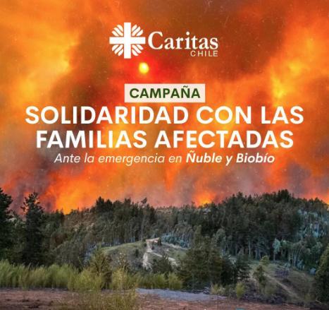 Ante los graves incendios forestales que afectan a las regiones de Biobío y Ñuble, Caritas Chile junto a las diócesis afectadas se encuentran evaluando la situación, recordando la importancia de mantenerse informado y priorizar el cuidado de la vida. Además, se está realizando la campaña bajo el lema “Solidaridad con las familias afectadas” para canalizar