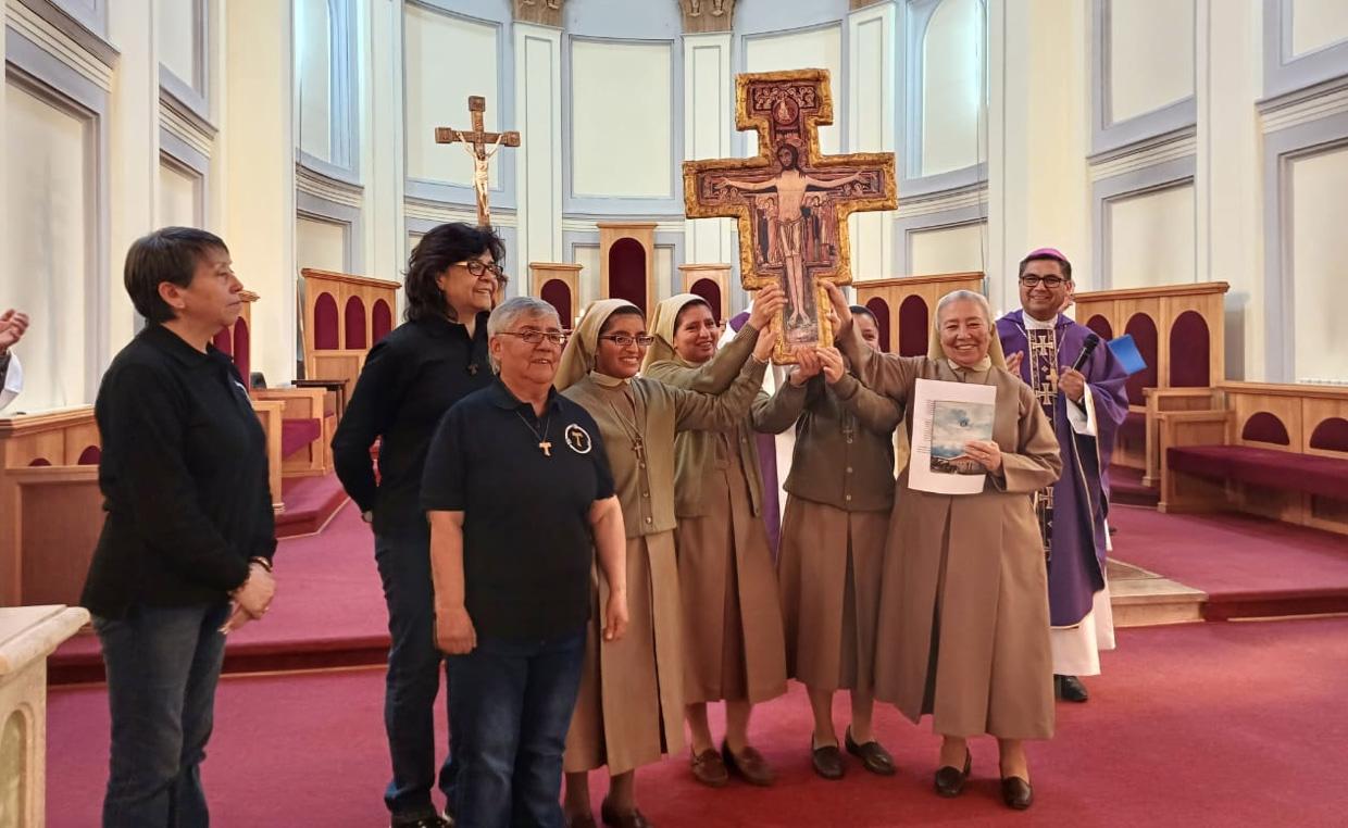 Las Hermanas fundadoras de La Comunidad de Punta arenas junto a La suPeriora GeneraL, reCiben eL Cristo de san franCisCo de asís: ¡restaura mi iGLesia!