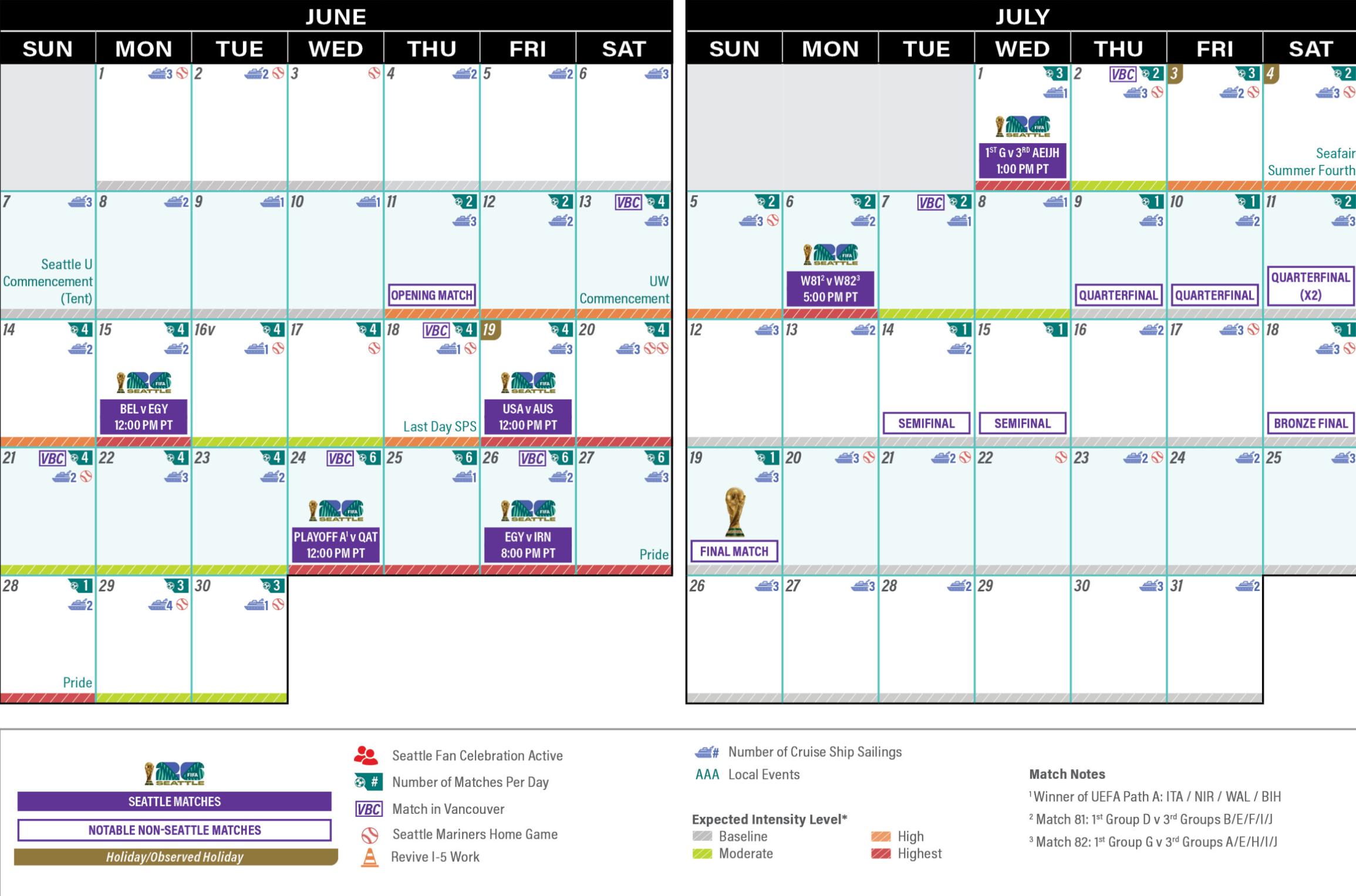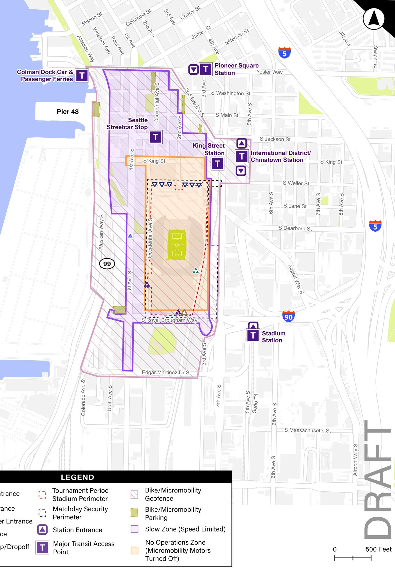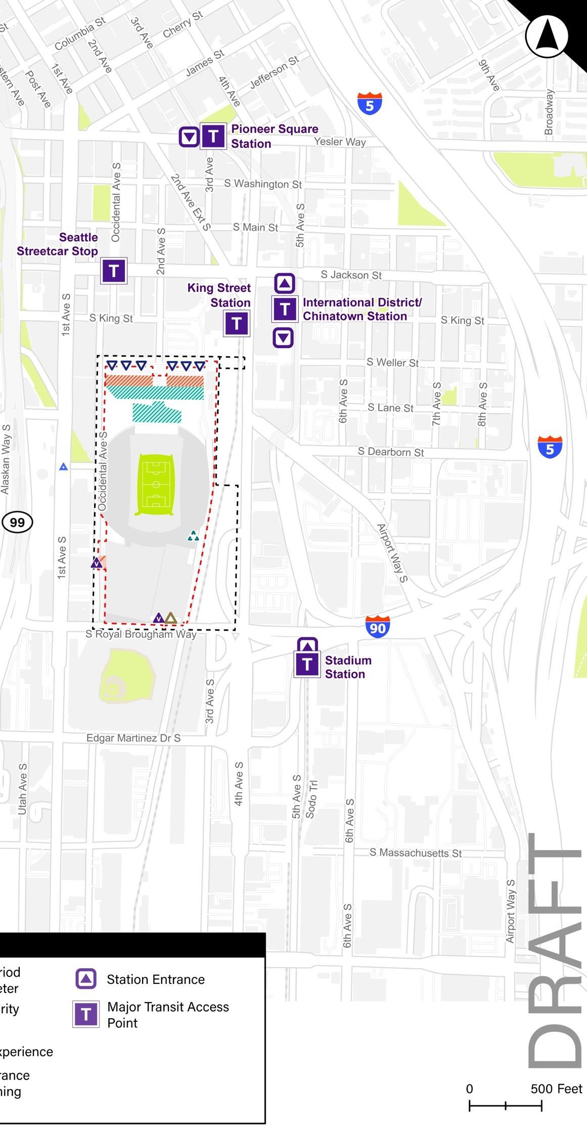 • Royal Brougham Way open for FIFA credentialed vehicles only (between 1st Ave S & 3rd Ave S)