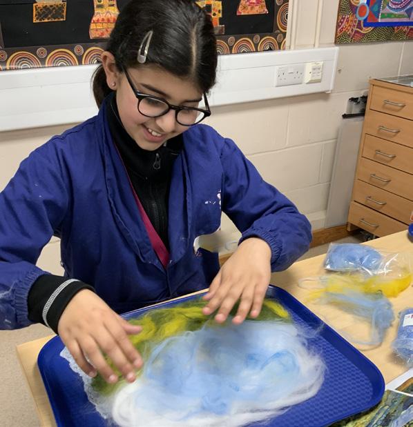 Inspired by the theme of Nature, Years 3 and 4 students came together in the Prep Hall to work with mixed media producing drawings with oils, large format painting, collage, 3D modelling and clay work. In other areas of the School, Year 6 replicated flower paintings on silk and Year 5 used the inspiration of Van Gogh to create landscapes in felt.